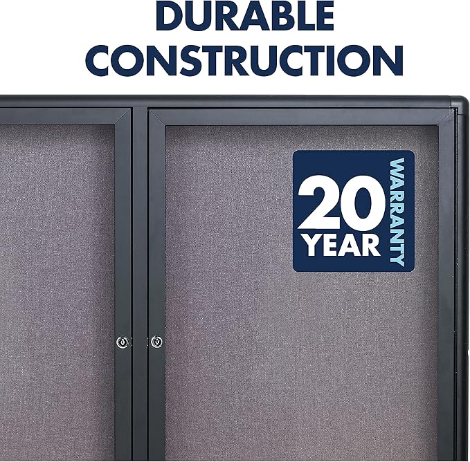 - 2 locking shatterproof acrylic doors allow for posting, protecting and easily updating important messages