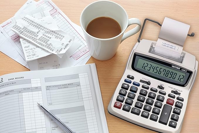 Victor Printing Calculator, 1208-2 Compact and Reliable Adding Machine with 12 Digit LCD Display, Battery or AC Powered, Includes Adapter,White