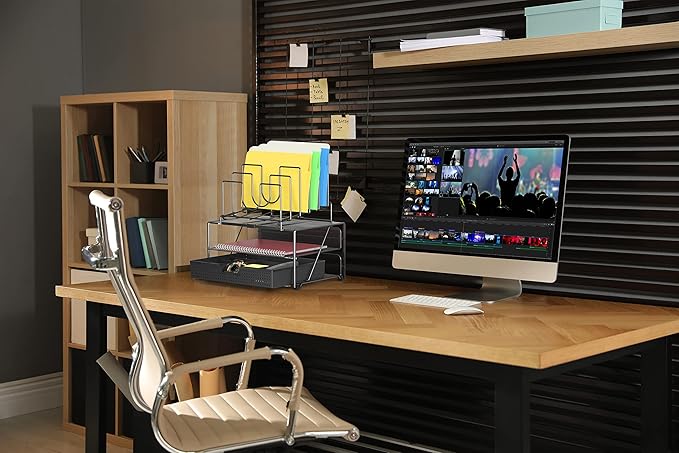 Deco Brothers Desktop File Organizer with Double Tray and 5 Folder Stand, Black