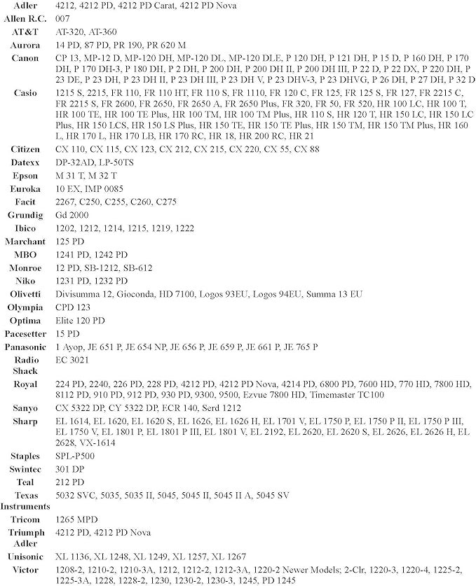 - Popular compatible models include Sharp EL-1750V EL-1801V, Casio HR-300RC HR-200RC HR-170RC HR-170RC HR-100TM HR-150TM, Canon P23-DHV P23-DHV-3 P170-DH3, CATIGA CP30A CP90A, TI-5045SV
