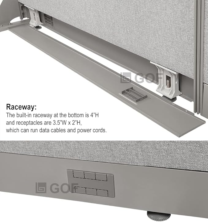 - Built-in raceway for data and power lines and leveling glides for uneven floor.