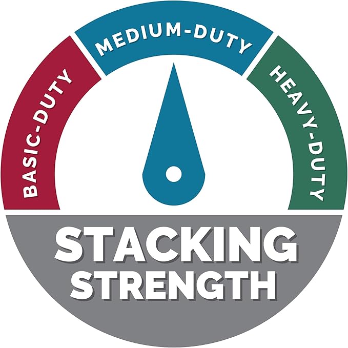 - Medium-duty stacking strength for moderate use with or without shelving