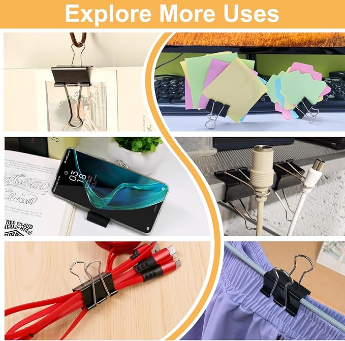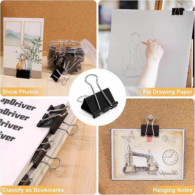 - Versatile Binder Clips for Everyday Use: Practical and efficient, our binder clips are your go-to solution for organizing, managing, or displaying photos, drawings, signs, papers, and recipes. Ideal for home, office, or school settings, these clips make your life simpler.