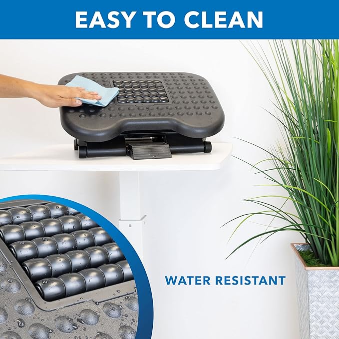 - ERGONOMIC FOOTREST: Reduce strain on your legs and elevate your feet with this under desk foot rest. Adjustable height and angle reduces pressure on lower back and alleviates discomfort while sitting.