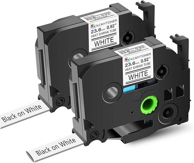 - Package Included: 2 pack KCMYTONER compatible for ptouch HSe-251 HS-251 HSe251 HS251 heat shrink tube label tapes; color: black text on white tape; size: 1 inch (23.6mm, flattened width) x 4.92 feet (1.5m).The size indication for this heat-shrink tube label is the width of the flattened tube as a label in a label printer. Do be aware that the size given relates to the label making machine, not the wire. HSe-251 23.6mm tube suits cables ranging from Φ7.3mm to Φ14.3mm in diameter.