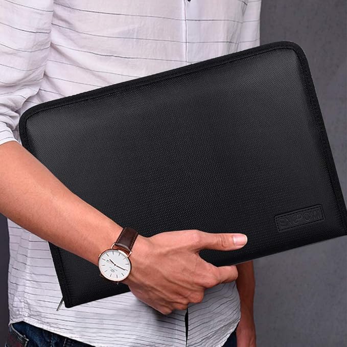 - DOUBLE LAYERS PROTECTION:Our newly designed file folder uses different materials than other folder.Double Layered design, high quality Black Non-itchy Liquid Silicone Coated Fireproof Fiberglass which can withstand temperatures as high as 1832β.This bag is FIRE and WATER RESISTANT.Fireproof file folders can fully protect your important documents, paper,birth certificate, passport.
