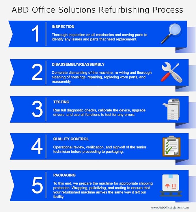 - This machine is fully refurbished in-house by our certified technicians. Comes with 30-Day Parts Warranty. Machine ships with average 30% consumables and power cord only.