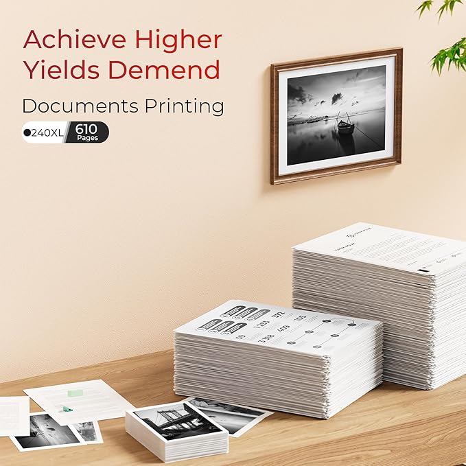 - 【Cartridge Page Yield (approx.)】Up to 630 pages per 240 XL Black ink cartridge (At 5% coverage, A4 paper)