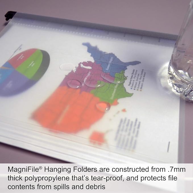 - LIFETIME GUARANTEE - Traditional hanging files are made of paper that rips, hangers that bend easily, and labels that often need replacing. All MagniFile products are constructed with spill-resistant, tear-proof, black polypropylene and come with an UNCONDITIONAL LIFETIME-GUARANTEE! BUY THEM ONCE. . . USE THEM FOREVER