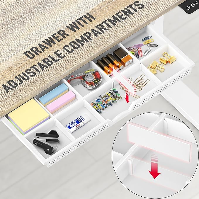 - Integrated Storage Drawer: Includes a built-in drawer to keep office supplies and personal items within reach, maintaining a clutter-free environment conducive to focus and efficiency.