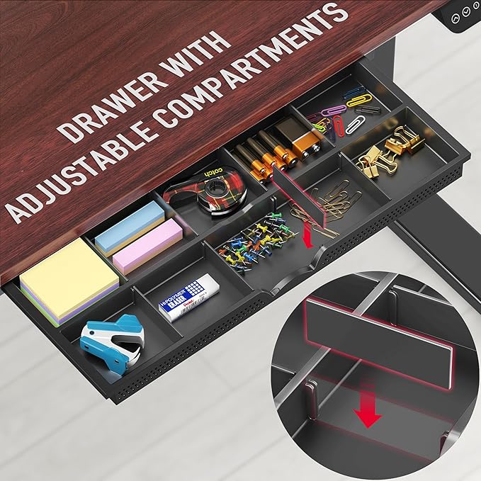 - Integrated Storage Drawer: Includes a built-in drawer to keep office supplies and personal items within reach, maintaining a clutter-free environment conducive to focus and efficiency.