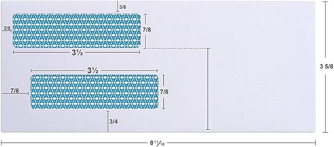 - ✉️ DUAL WINDOW CUSTOM DESIGNED FOR MAILING BUSINESS CHECKS: Top Window height is 7/8 inch X 3-1/2 inches wide and is positioned 3/8 inch from the left and 2-3/8 inch from the bottom, Bottom Window height is 7/8 inch X 3-1/2 inch wide and is positioned 7/8 inches from the left and 3/4 inches from the bottom