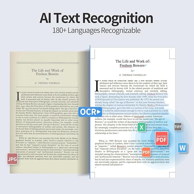 - Fast & Multi-Format: Ultra-fast scanning speed of just 2 seconds per page. Output files to JPG; Word; PDF and Searchable PDF