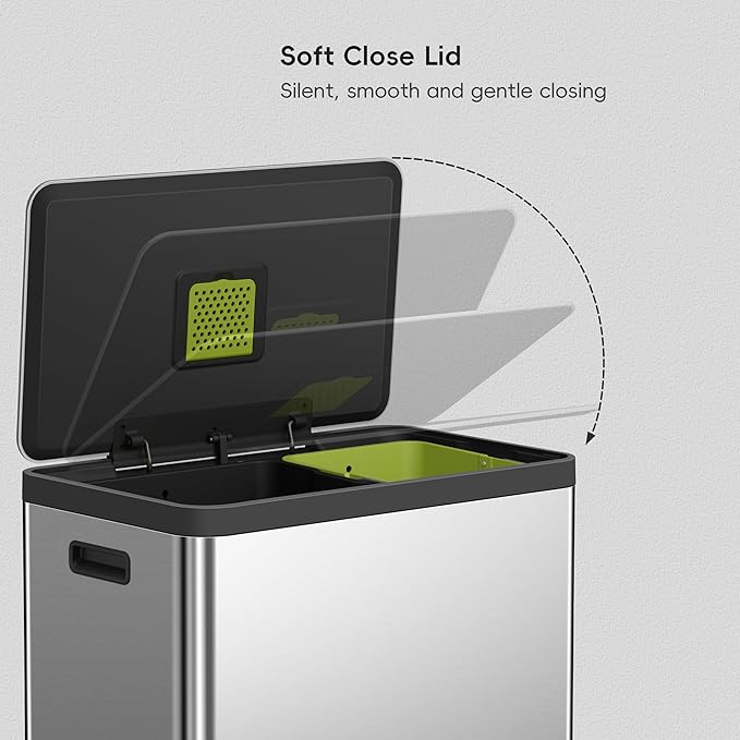 - Dual Compartment Trash Can - Easily distinguish between waste and recyclables with 2 removable, color-coded inner buckets.