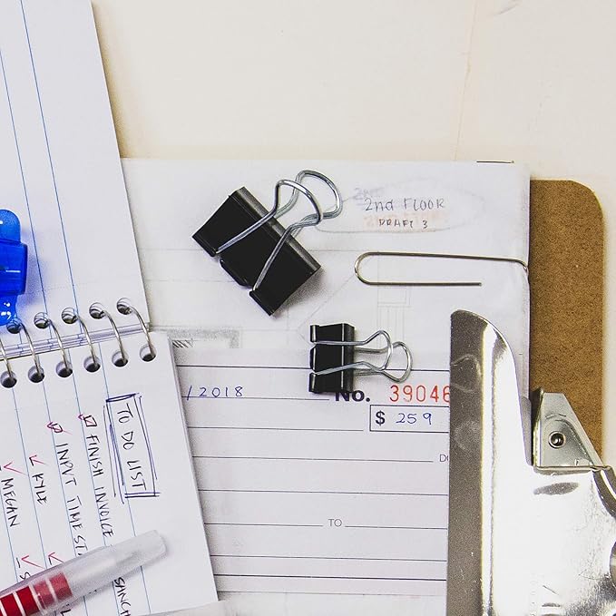BAZIC Binder Clips Small Black 3/4" (19mm), Paper Clamps Paper Clip, Paperclips for Office School Supplies Home Kitchen Storage (12/Pack), 12-Packs