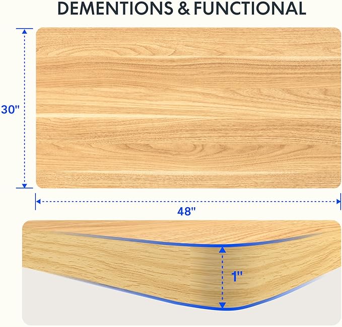 - AMPLE WHOLE-PIECE DESKTOP: With its whole-piece 1β eco-friendly desktop, this standing desk provides plenty of room for your computer setup, documents, and accessories, creating a well-organized and productive work environment. Due to hand measurements, desktop dimensions may vary slightly by 0 to 1β.
