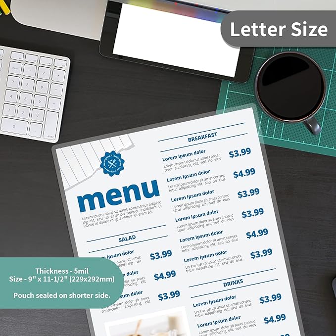 - πLETTER SIZE: Laminating Sheet Paper is 5 mil thickness, 9 x 11.5 inches, about 229 x 292mm. Fits letter size documents up to 8.5 x 11 inches. The thermal laminating pouches sealed on shorter side.