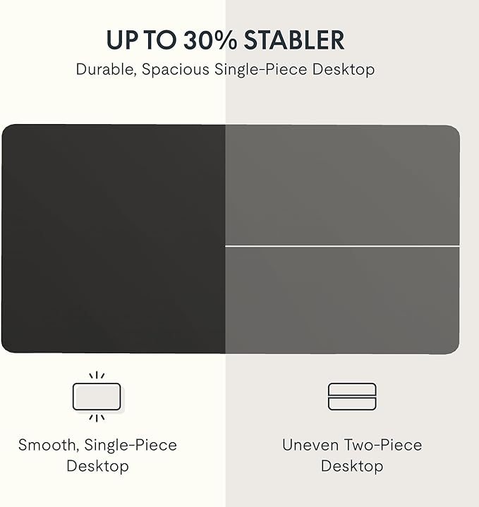 - AMPLE WHOLE-PIECE DESKTOP β FSC-Certified wood: Table top made of FSC-Certified wood, this standing desk features a spacious one-piece eco-friendly desktop that provides ample room for your computer setup, documents, and accessories, creating a well-organized and productive work environment. Hand-measured: Β±1" tolerance.