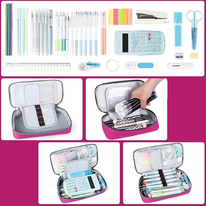 Homecube Large Capacity Pencil Case Oxford Cloth Bag Storage Pouch Marker Pen Pencil Cute Stationery Organizer Bag Holder with Zipper for Middle High School & Office Boy Girl Teen - Rose Red