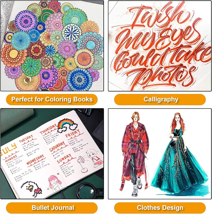 - 120 COLORS & 1 COLORING BOOK: Lelix dual tips brush pen set contains 120 bright colors pens and 1 coloring book! Great for adult kids artists coloring books, calligraphy, journal, drawing, sketching and doodling.