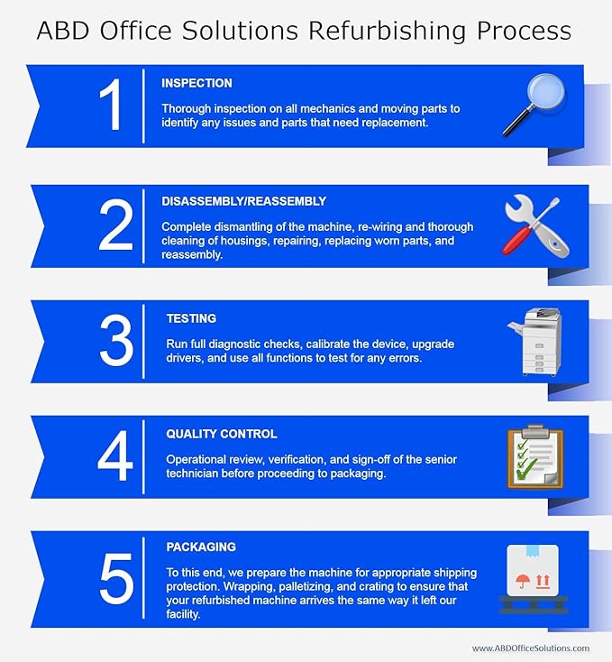 - This machine is fully refurbished in-house by certified technicians. Comes with 30-Day Parts Warranty. Machine ships with average 30% consumables and power cord only.