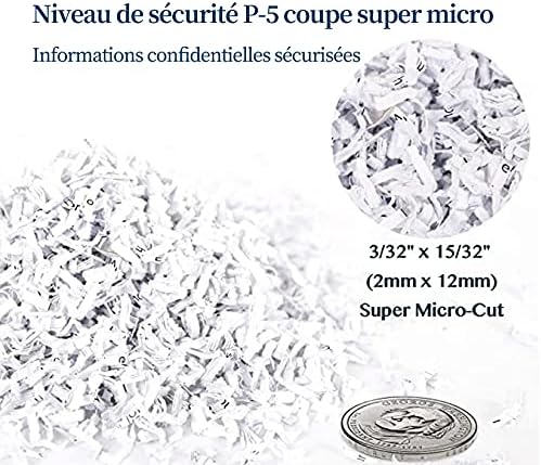 - SUPER MICRO CUT HIGH SECURITY LEVEL P-5 paper shredder to secure confidential information. Shreds max 8-sheet paper/staples/clips/credit cards into tiny particles measuring 3/32" x 15/32" (2x12mm)