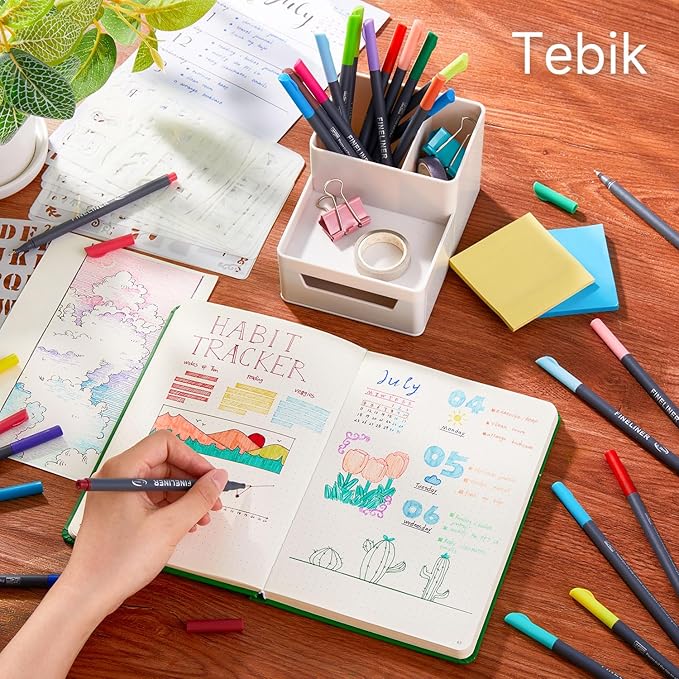 - High Quality Water-Based Ink: Our fineliner pens filled with top quality ink that flows easily, every pen will provide smooth writing without worrying that the ink will dry out prematurely. No bleeding, no smearing, perfect for journal & planner. The ink is water-based and acid free, our 100 fineliner pens can be enjoyed by everyone-completely kid safe, conforms to ASTM D-4236 & EN71.