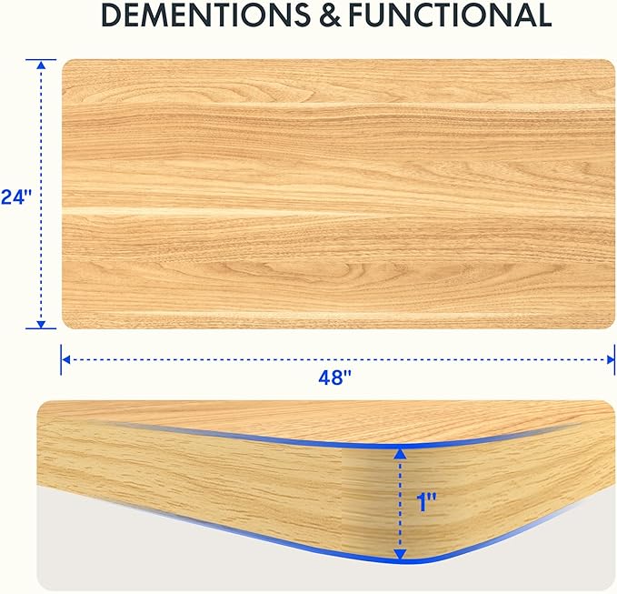 - AMPLE WHOLE-PIECE DESKTOP: With its one piece eco-friendly desktop, this standing desk provides plenty of room for your computer setup, documents, and accessories, creating a well-organized and productive work environment. Due to hand measurements, desktop dimensions may vary slightly by 0 to 1β.
