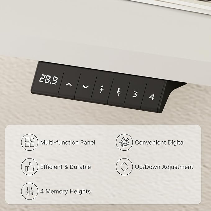 - 4 MEMORY BUTTONS: Easily switch between sitting and standing positions with our 6-button digital controller that features 4 programmable memory presets. The motorized height-adjustable system adjusts smoothly from 28.1β to 45.7β, and the motor runs quietly at less than 50 dB.