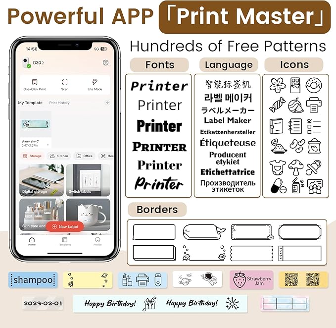 - Multiple Creative Functions & Label Templates - Choose from 1000+ symbols, 60+ frames, and a variety of fonts. Enjoy convenience and save time. Easily create various label designs using the app, including icons, text, tables, symbols, logos, barcodes, QR codes, images, timestamps, Excel imports, scanning, OCR, and voice recognition. Itβs fun and effortless!