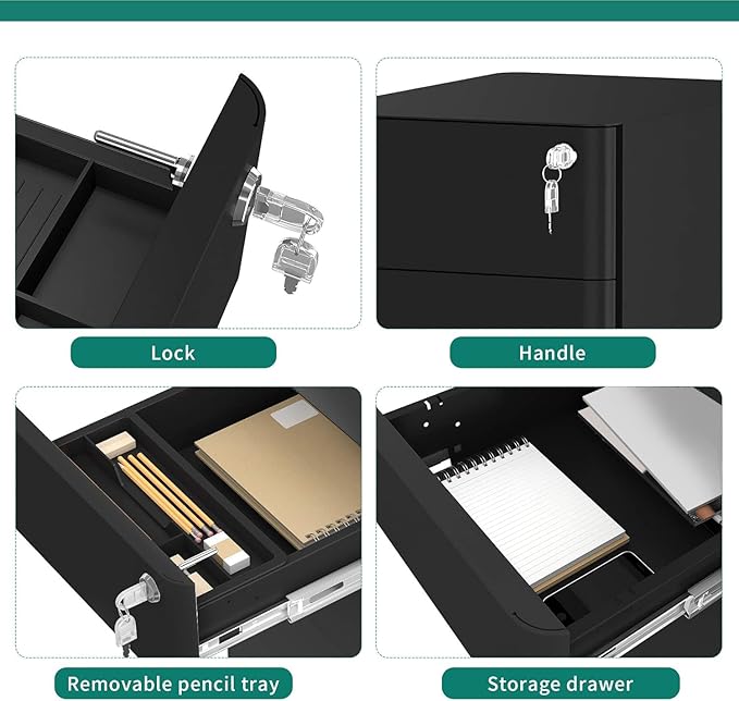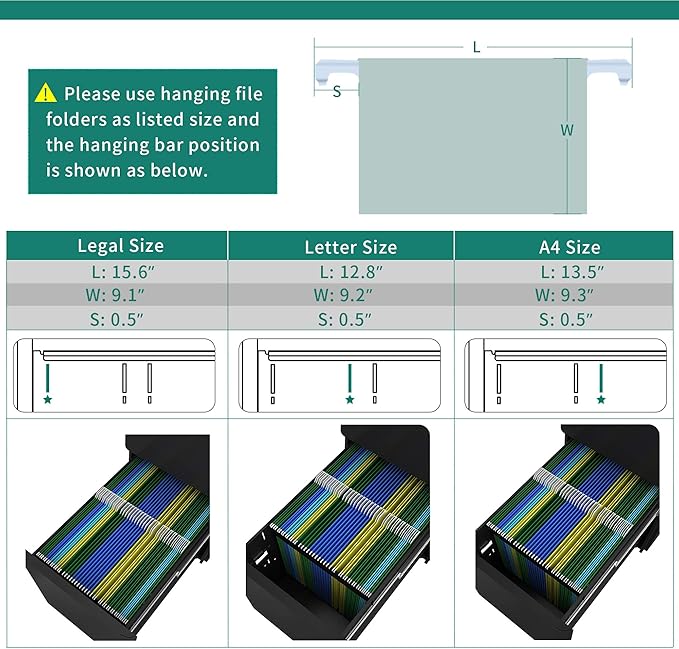 - 【Premium Drawers】The top drawer contains a removable pencil tray, while the bottom drawer features a removable hanging file bar that accommodates letter, legal, and A4 size documents; Keep your files organized