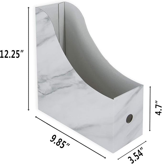 - Perfect Size: Marbling vertical magazine containers come in 6 Packs, Size: 9.85" L x 12.25"H x 3.54" W, self-adhesive labels included