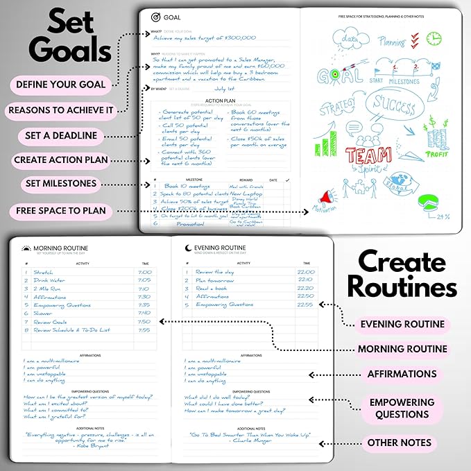 - STAY ALIGNED WITH YOUR GOALS – Use built-in goal-setting tools and review prompts to stay focused on long-term success—whether you’re managing business milestones, career growth, or personal development.