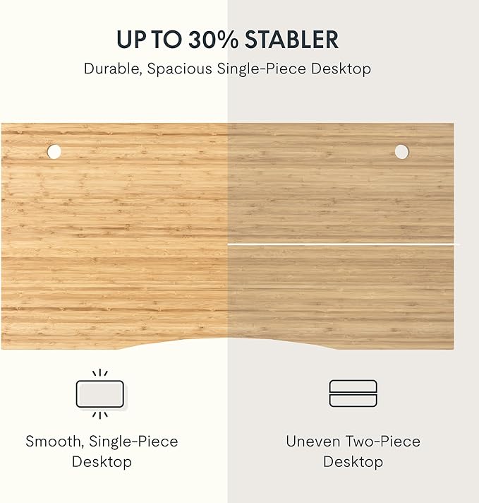 - AMPLE WHOLE-PIECE DESKTOP: With its whole-piece 1β eco-friendly desktop, this standing desk provides plenty of room for your computer setup, documents, and accessories, creating a well-organized and productive work environment. Due to hand measurements, desktop dimensions may vary slightly by 0 to 1β.