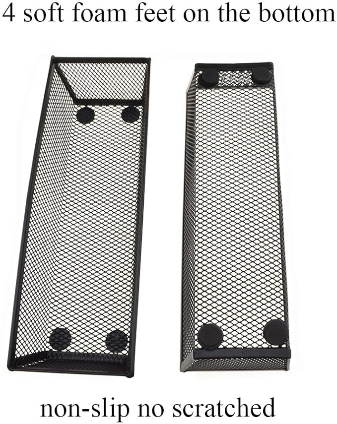 - Mesh metal:This mesh dispenser are durable and nice quality for desk organizers.it have 4 soft foam feet on the bottom. It's non-slip and it protects the desk from getting scratched.Do not topple over easily.Good quality, no sharp edges.It matches other mesh desk items and fit someone who love the style of the wire mesh office organizer items.