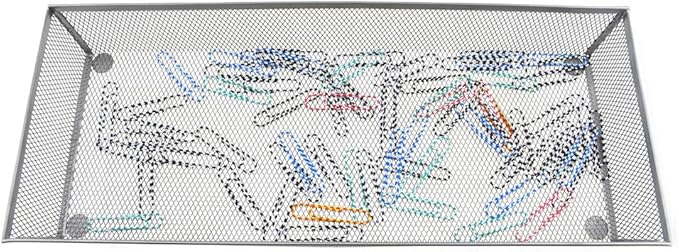 HAHIYO Stackable Mesh Tray Cup 15 x 6 x 2 inches Sturdy Container for Desk Drawer Organizer Collection for Home Office School kitchen Soft Foam Feet No Sharp Edges 1 Pack Silver