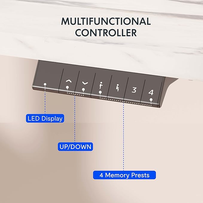 - 4 MEMORY PRESETS: Easily store and recall different height settings with our multifunctional memory system. Effortlessly switch between sitting and standing to reduce the risk of health issues like back and neck pain caused by prolonged sitting.