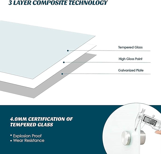 - 【ENVIRONMENTAL & LONG-LASTING】: The strong durable tempered glass surface resists stain and ghosting. Designed with 4mm thickness, rounded corner, and smooth edges. Cleaner, safer, and longer-lasting than traditional whiteboards.
