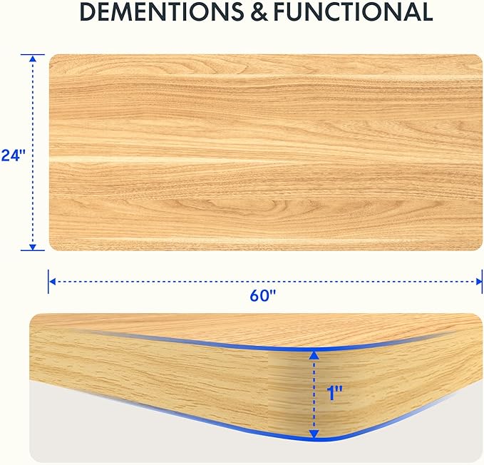 - AMPLE WHOLE-PIECE DESKTOP: With its whole-piece 1β eco-friendly desktop, this standing desk provides plenty of room for your computer setup, documents, and accessories, creating a well-organized and productive work environment. Due to hand measurements, desktop dimensions may vary slightly by 0 to 1β.
