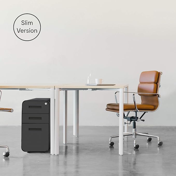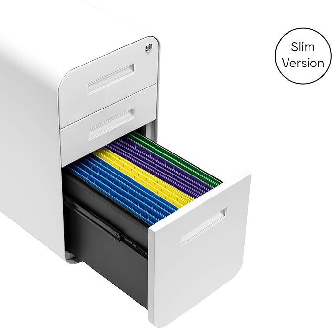 Laura Davidson Furniture Stockpile Slim 3-Drawer Mobile File Cabinet with Lock - Under Desk Metal Filing Cabinet, Legal/Letter File Folders, Wheels and Stationary Feet, Pre-Assembled, White