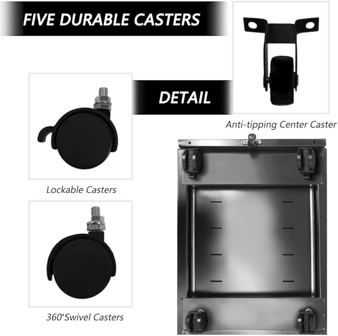 - ❤All for Improving Office Productivity -- Overall size:14.9" W×17.32"D×23.8"H, Perfect size make the white file cabinet can be put under desk or side table or small spaces to save space, 5 smooth anti-tilt casters can be rotated 360°and locked, flexibly adapting to the all kinds of office floor. 1 stationery tray is included, you can use it to organize small office supplies. Unique pull-out handles are easy to grab. All for improving office productivity and efficiency!