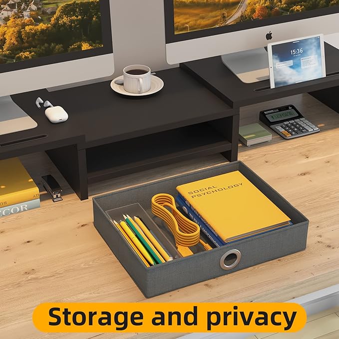 - 【Perfect Storage with Drawer 】Our computer monitor riser includes 13 inches practicality slide-out drawers, for storing items like post-it notes, writing utensils and mobile devices.