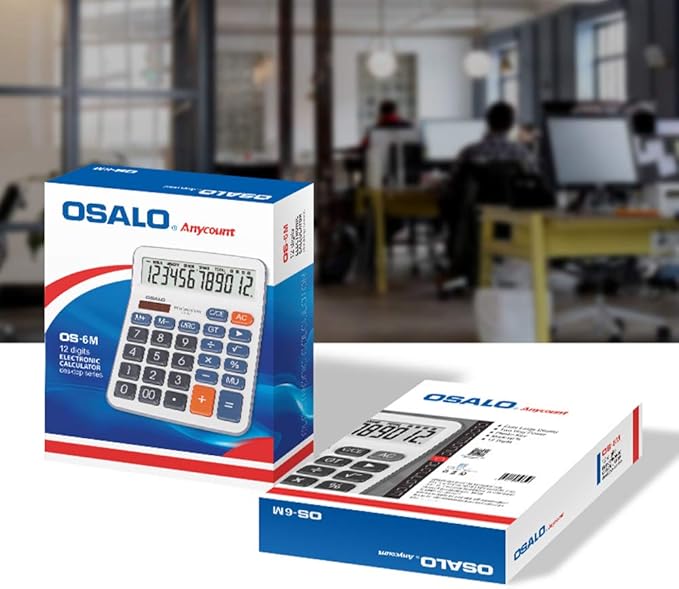 Desktop Calculator Large LCD Display 12 Digit Number Handheld Portable Pocket Basic Calculator with Big Soft Sensitive Button, Battery and Solar Powered, for Office Home School Use(OS-6M)