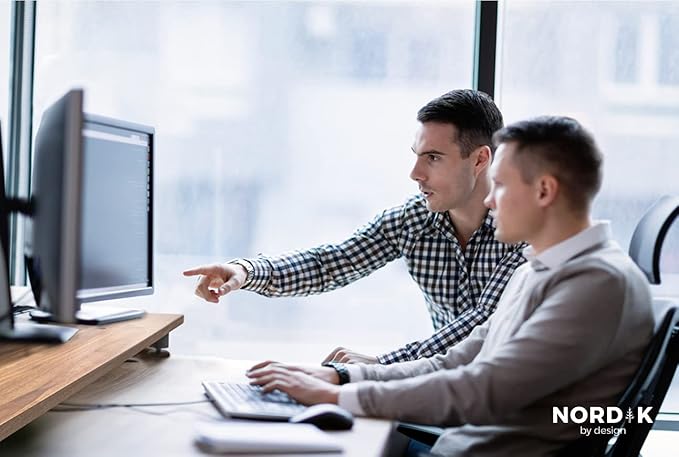 Nordik Large Dual Monitor Riser for 2 - Premium Handmade Hardwood Acacia Computer - Laptop TV Stand with Storage for Desk Accessories - Organizer Television