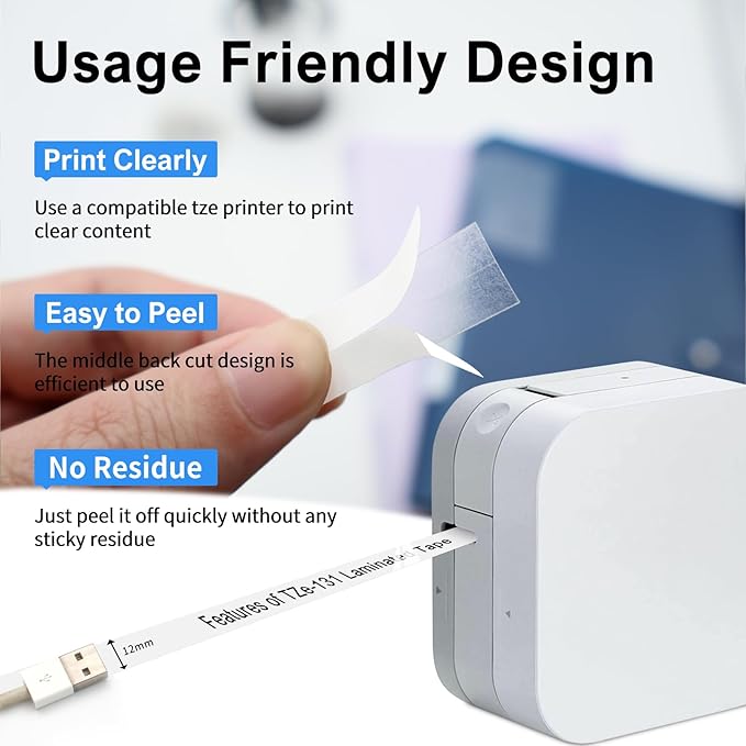 - Easy to Peel: Compatible with Brother label tape clear TZe-131 has split-back design is convenient to use. No sticky residue when the clear label maker tape TZe-131 is removed.