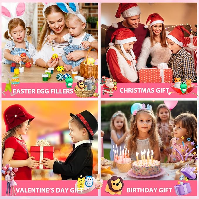 - FUN DESK PETS:Perfect for classroom rewards, these animal erasers bulk packs solve the hunt for affordable, fun erasers for kids bulk. The cute erasers for kids keep young minds engaged during lessons or travel. Use them as Valentine’s erasers for kids, back-to-school party favors, or Easter egg fillers – their vibrant colors and premium quality make theEaster giftfor kidsstand out. Plus, they’re non-toxic and erase cleanly