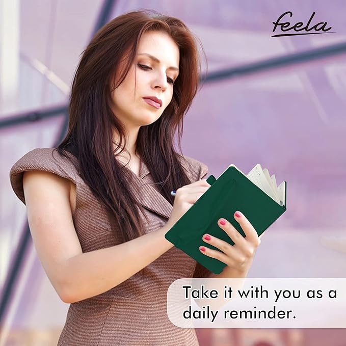 - Feela 3 Pack Classic Ruled Notebooks contains 3 classic dark green ruled sturdy cover notebooks and 3 Black Retractable Pens. Each of the notebooks measures 8.3” x 5.1”, which is perfect to carry and easily held by young girls and boys. These black cute pens are customized to be placed in the pen holder, which is pretty convenient.