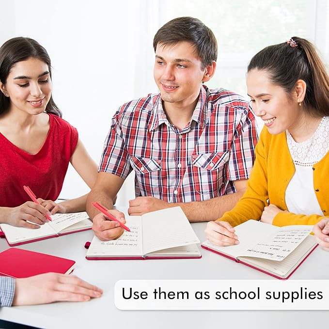 - Feela 24 Pack Classic Ruled Notebooks contains 24 classic berry ruled sturdy cover notebooks and 24 Black Retractable Pens. Each of the notebooks measures 8.3” x 5.1”, which is perfect to carry and easily held by young girls and boys. These black cute pens are customized to be placed in the pen holder, which is pretty convenient.