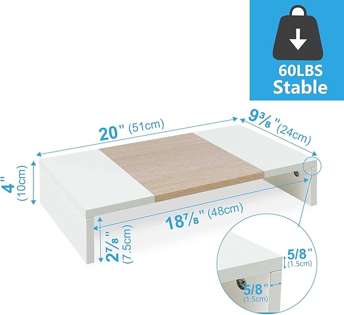 - 【Better Support】Stand can hold 60Ibs, there is a thick steel bar stabilizing support structure on the back avoid shaking. TEAMIX monitor riser made of high quality MDF wood board, strong and sturdy.
