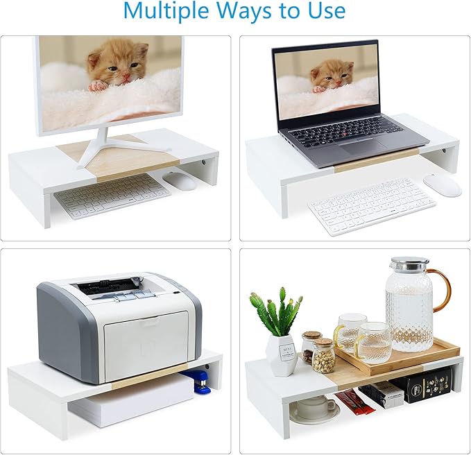 - 【Prefect Office Partner】This Multi-function stand can meet your 3 needs one time: ★Raise monitor/laptop/printer/game box ★Relieve fatigue ★Increase storage space.